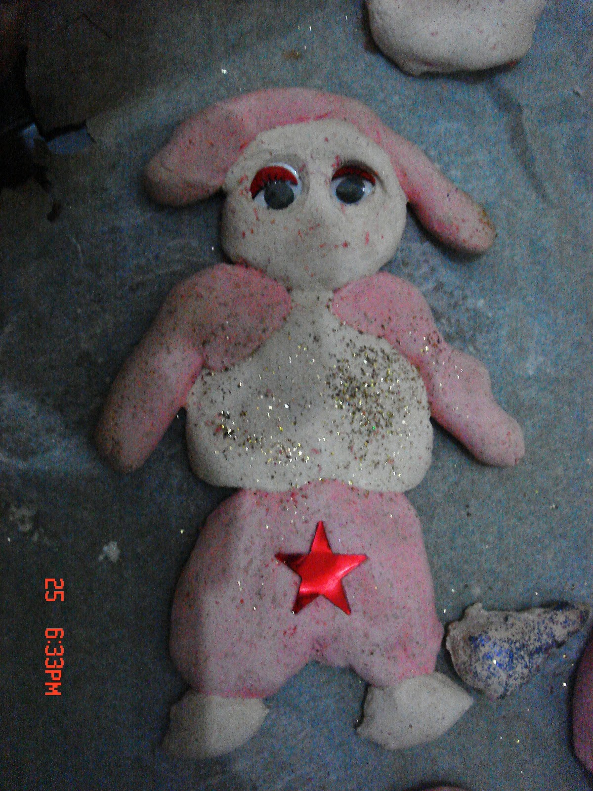 Parçalara böldük, bir kısımına gıda boyası döktük. Kolları bacakları birbirine yapıştırdık.