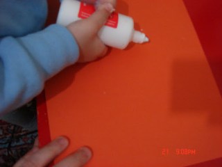 Tutkalı dilediğimiz renk fon kartonu üzerine sürüyoruz