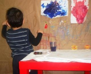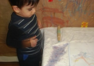 Bir de bardak devirmelerine karşı annenin sıfır alt açma örtüsü boya işine de yarar!!!