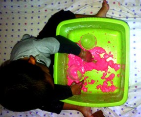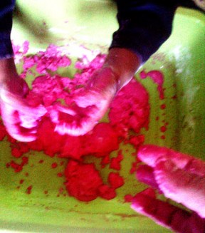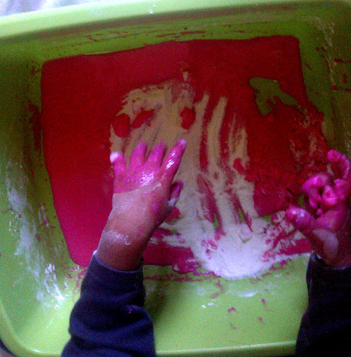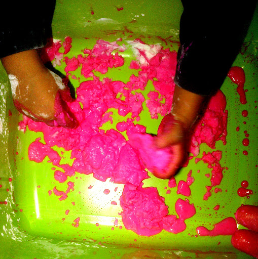 Bugün oynadığımız ise, pazar günü aktivitemiz olaral idealdi. Evimizdeki malzemelerle pembe çamur yaptık.