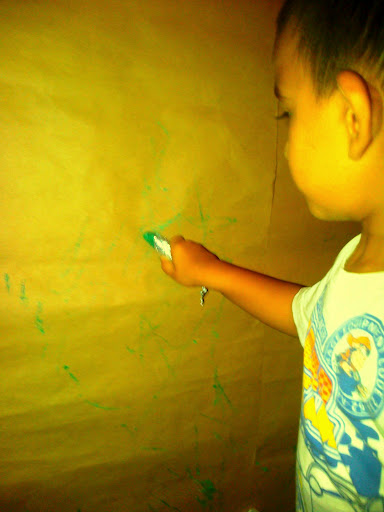 Boyanın ilk uygulama bulduğu yer.. Her zamanki gibi zemin 🙂 Ama sabundan yapılma olduğundan hemen kolayca siliniyor çıkıyor :))