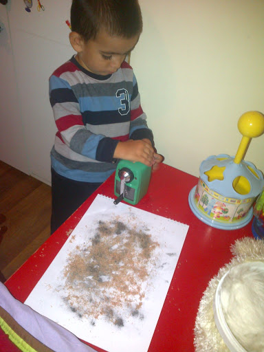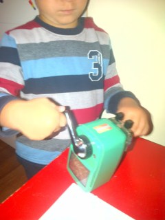 Yapıştırıcılar ve Eski (çocukluğumuzdaki) kalem açacağımız miniğin ilgisini çok çektiğinden.