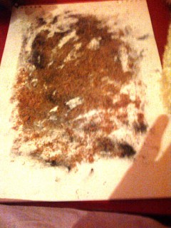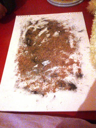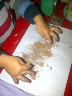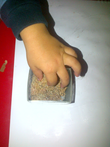 Elimizle yaydık.. İyice yapıştırdık.. (Bence bunun renkli gıda boyası ile boyanmışı ile de çalışma yapılabilir…Kum boyama gibi..)