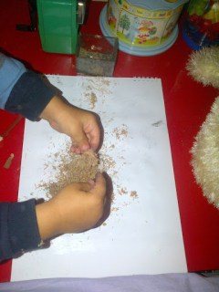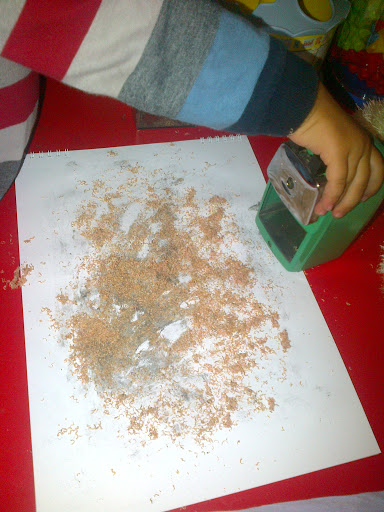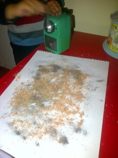 Açtığımız kalemin deşarj kısmını açtık. Kıvırcık ahşap kalem artıklarını mıncıklayarak yokladık.