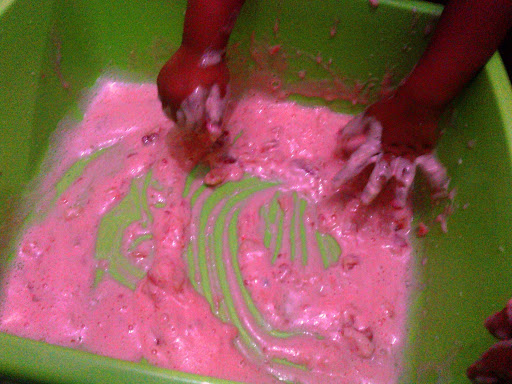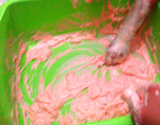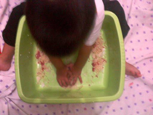 Gıda boyası da su ile çözününce pembe bir sabun oldu..