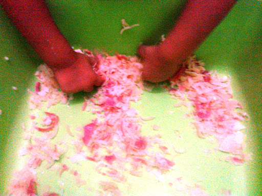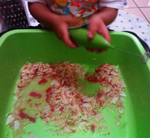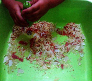 Yaptığım Doğal sabunlardan şekli bozuk olanları seçtik ve kıymık kıymık rendeledik