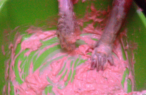 Heryeri sabun yapana dek çalıştık… En son bunları bir kaba doldurduk.. KEndi şeklimizi verdik