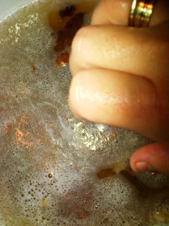 Sıkarken bile köpürüyor. Sonra bunu bir sıvı deterjan kabına doldurup 1 hafta içinde kullanmak üzere banyoya götürüyorum.