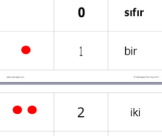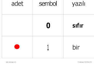 Yeni bir oyuna başladık. Büyük A4 kağıtları üzerinde sayılar yazı ile rakamlar ve adetlerini gösteren resimler. Sayı ve renkleri yazdırılabilir(printable) oyun kağıtları ile çalışacağız.