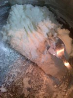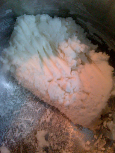 Bu kez pişirilen hamur peşindeyiz bir de kar gibi olması ve süsleme için yeni hamur yaptık..İşte