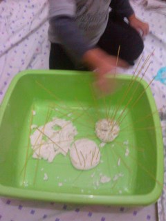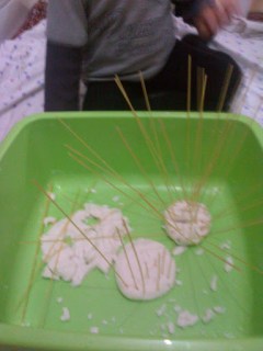 Üzerine çubuk makarnalarımızı taktık, pasta oldu.