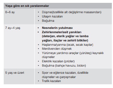 Çocuklarda 0–2 yaş aralığındaki kazaların %76’sı düşme yüzündendir. Bu da genelde ev ortamında gerçekleşir.