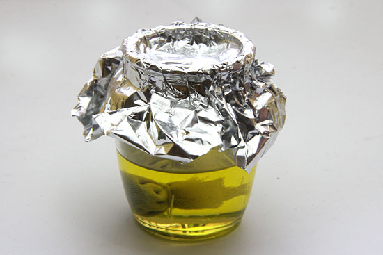 Kavanozunuz üstüne aluminyum folyodan bir kapak yapın ve içeriye doğru kapak şeklini verin ki buhar dışarı kaçmasın.